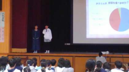 6時間目に講堂で、5・6年生、保護者、教職員を対象として学校保健委員会を開催しました。