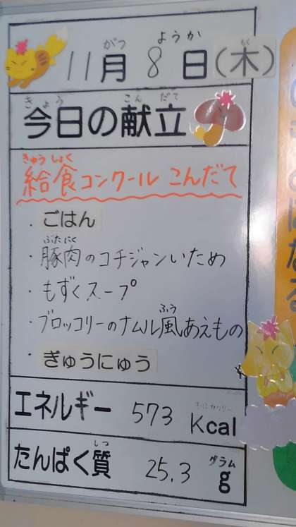 11月8日(木曜)の給食