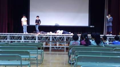 今、6年生は学習発表会に向けて練習をがんばっています。