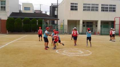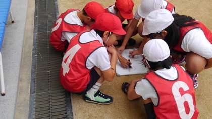 白熱したゲームになり、勝利して「やった—!」と喜ぶ子、泣いてくやしがる子がいました。チームが一つになり、とてもよい雰囲気でした。