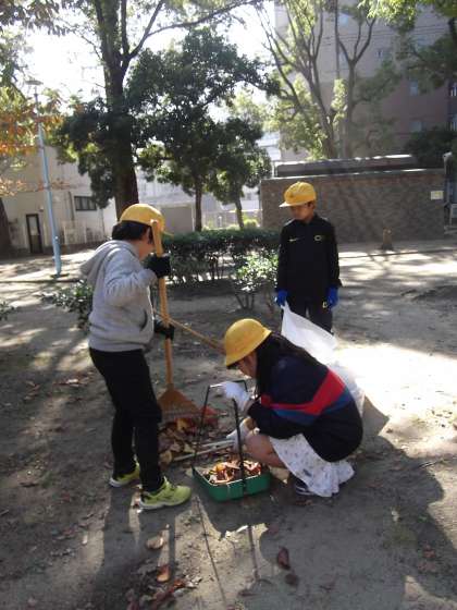 いつも遊んでいる東小橋公園を清掃しました。みんな一生懸命に取り組み、たくさんの落ち葉を集めました。終了時刻になっても、「まだ、やりたい。」と言う子が何人もいました。公園がきれいになり、みんな満足した様子でニコニコと笑顔で学校へ戻りました。