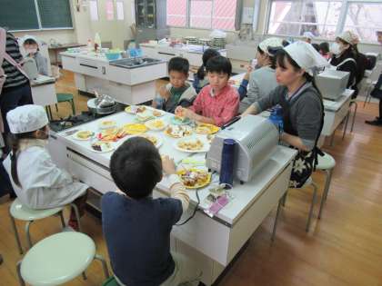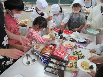 11月20日(火)PTA親子わくわくクッキングを行いました。たくさんのご参加ありがとうございました。9組の参加で、ホットサンドとパンの耳のクイニーアマン風をみんなで和気あいあいと作りました。保護者の方に見守られながら、おいしく作ることができました。
