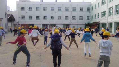 今日は、なわとび集会がありました。自分の得意なとび方や苦手なとび方を一生懸命練習していました。