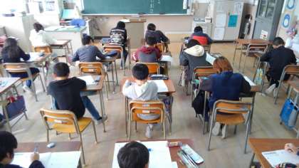4年生は、2時間目算数のテストをしていました。みんな真剣に受けています。がんばって自分の力を出してください。
