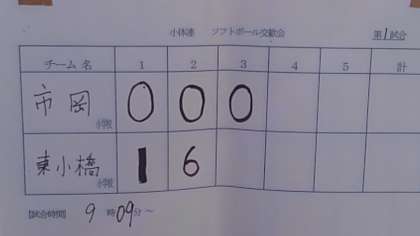 第一試合は、市岡小学校と対戦し、7—0で勝ちました。