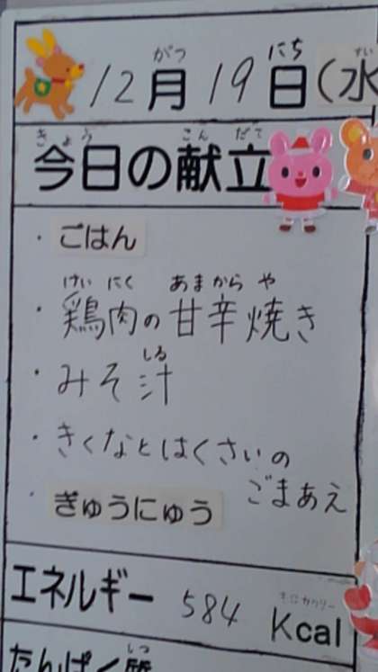 12月19日(水曜)の給食