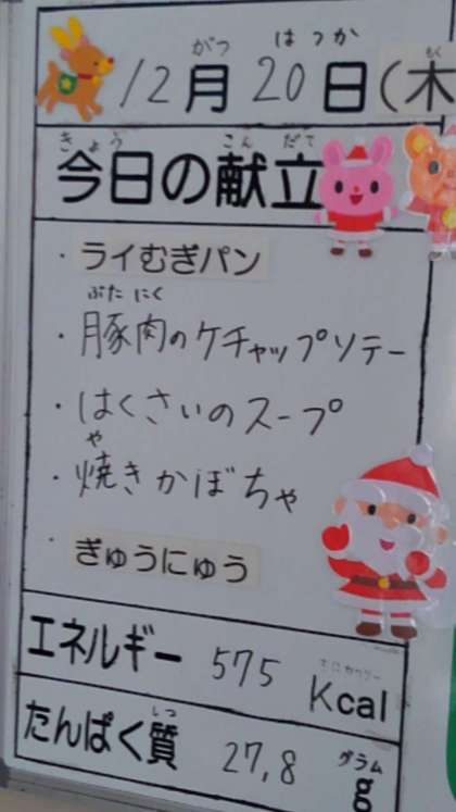 12月20日(木曜)の給食