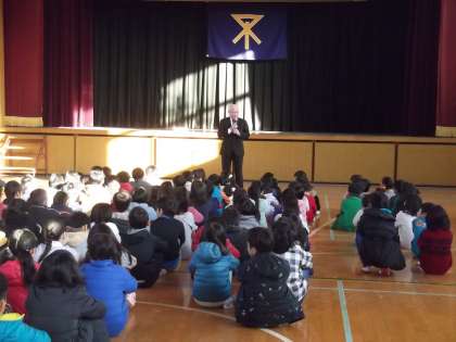 校長先生と新しい年の始まりのあいさつをして、冬休みのことや3学期の生活についてのお話を聞きました。