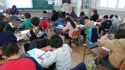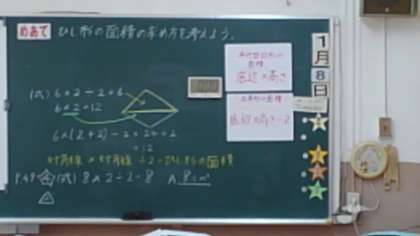 1月8日(火曜)2時間目、5年生が算数の授業でひし形や台形の面積の計算方法を学習していました。