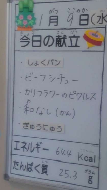 1月9日(水曜)の給食