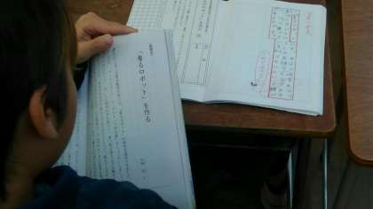 1月15日(火曜)1時間目、国語の授業です。『「着るロボット」を作る』という文章を音読して、筆者の考えるゆめのロボットとは、どのようなものかを発表していました。その後、筆者の考えを100字程度でまとめていました。