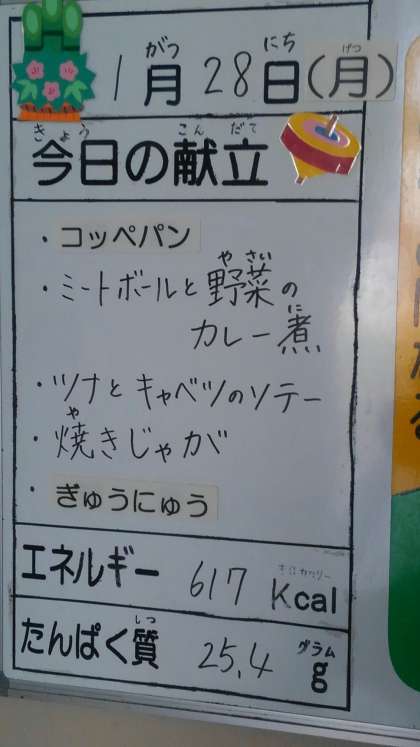 1月28日(月曜)の給食