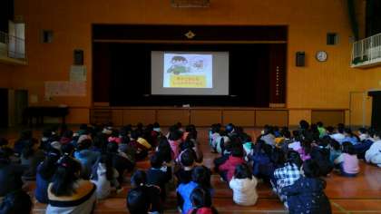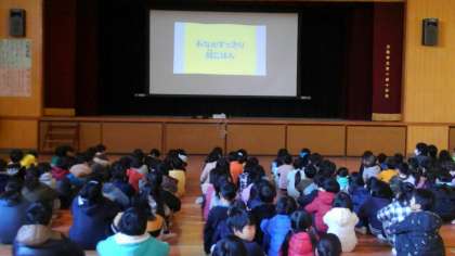 健康委員会から快食快便について、ビデオプロジェクタ—を使って、健康委員会の児童がつくったお話がありました。健康委員会のみなさんありがとうございました。