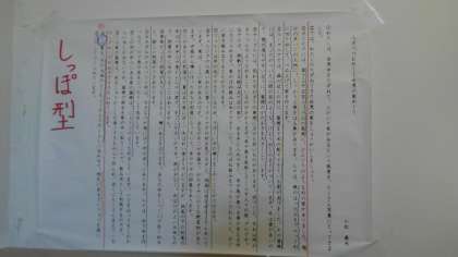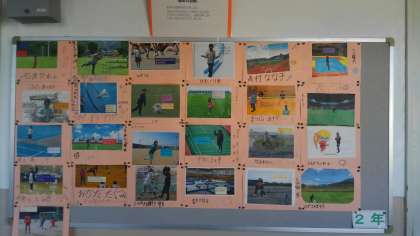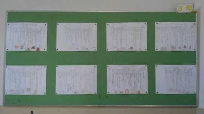 2年生の教室前と東階段の壁に3年生の作品が展示されていました。