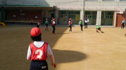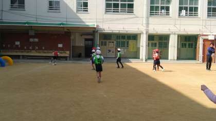 3時間目、3年生が体育の学習で、サッカーゲームをしていました。