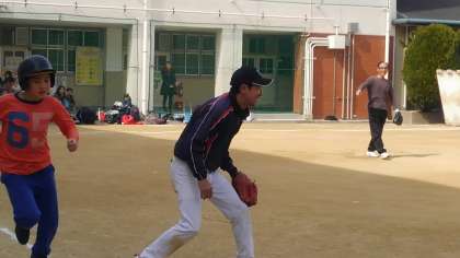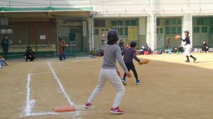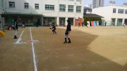 2月24日(日曜)にスポーツクラブのお別れ会がありました。ソフトボールとバドミントンにわかれて、子どもたちのチ—ムと保護者、先生方の混成チームとでゲームをしました。