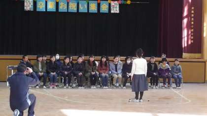 3月2日(土曜)1時間目に、講堂で卒業お祝い集会がありました。
