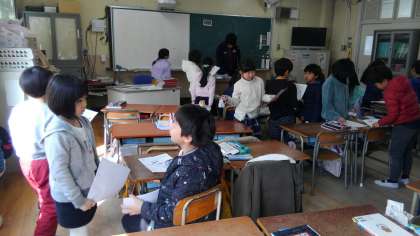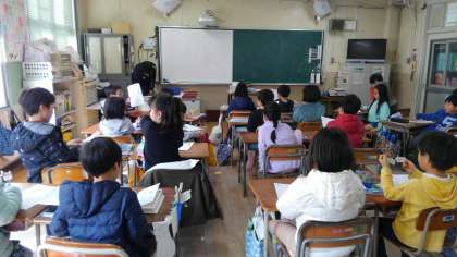 2時間目、2年生が算数の学習で、かけ算を覚えていました。お互いに覚えているかどうか確かめていました。