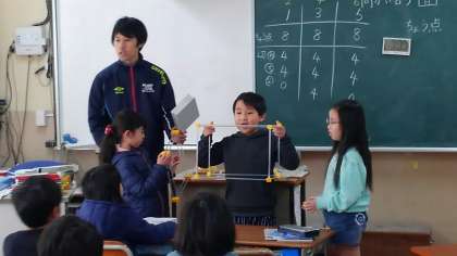 面、ちょう点、へん、向かい合う面について学習していました。自分たちで立体を作っていました。