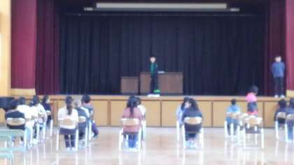 3時間目、6年生が講堂で卒業式の練習を始めていました。