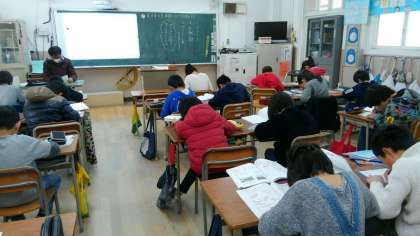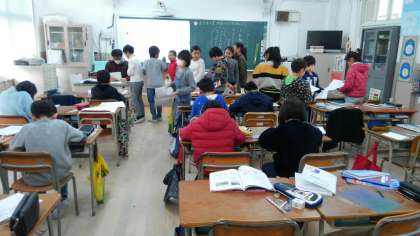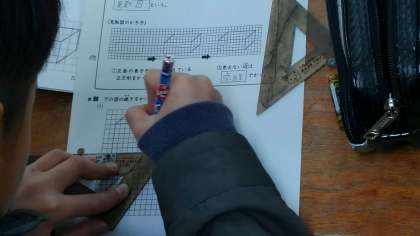 2時間目、4年生が算数の学習をしていました。直方体の見取り図のかきかたを考えていました。