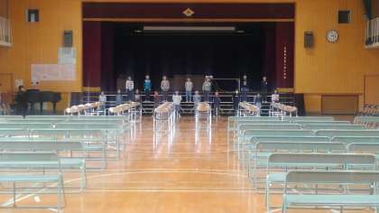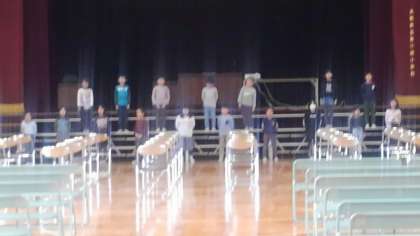 5時間目、1年生が講堂で入学式で歌う校歌の練習をしていました。