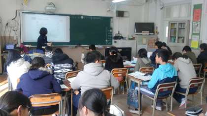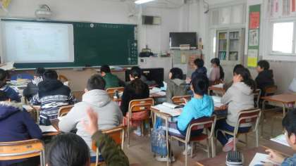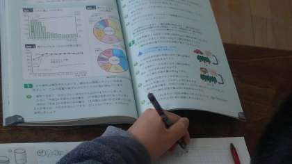 1時間目、5年生が算数の学習をしていました。復習問題にチャレンジしていました。