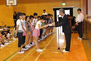 夏休みにいろいろな事に頑張った子どもたちに、表彰状がわたされました。