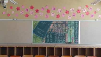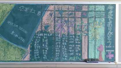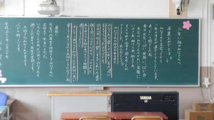 早朝、6年生の教室をのぞいてみると、松吉先生の卒業生に贈る言葉が黒板に書かれていました。