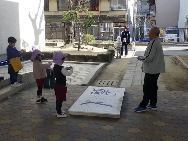 1月14日(水)に1年生と東小橋幼稚園、東小橋保育所、キッズファーストこども園が合同で昔遊びの体験をしました。
