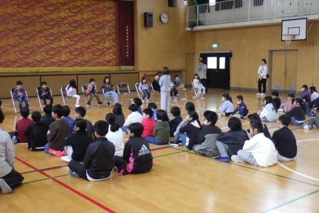 おにいさん、おねえさんの拍手のなか、6年生と手をつないで少し恥ずかしそうに入場してきた1年生のみなさんでしたが、大きな声ではきはきと自分の名前も言えました。すばらしい!そのあと、人数遊びゲームをして遊びました。児童代表からの言葉にもあったように、困ったことがあれば何でも聞いてください。安心して学校生活を送ってくださいね。