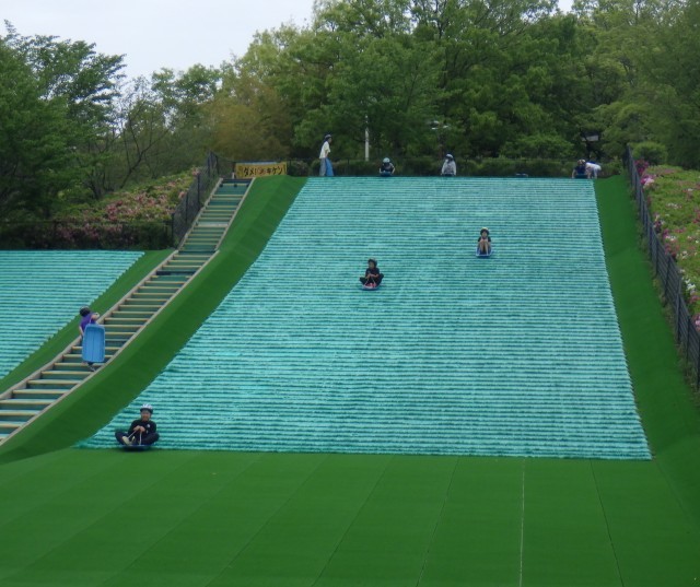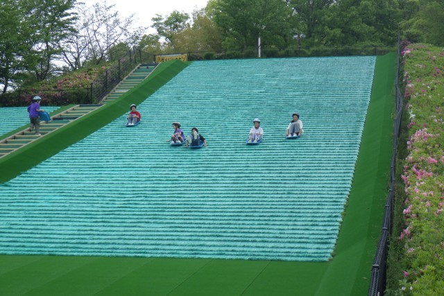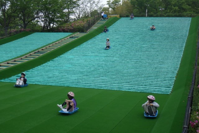 ソリとヘルメットを借りての芝滑り!何度も何度も楽しみました!!