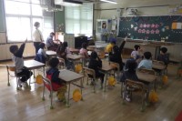 2年生は国語の学習です。「ことばあそびを楽しもう」の単元で様々な言葉遊びを知ったり、身の回りの言葉を使って楽しんだりししています。今日は、食べものしりとりやはさみことばに挑戦していたようです。その後は...