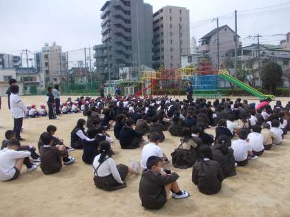 1年生は「お・は・し・も」、「押さない」「走らない」「しゃべらない」「戻らない」