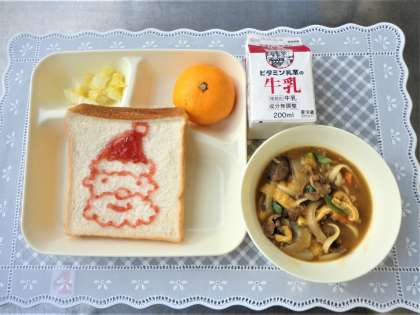 食パン・いちごジャム・カレーうどん・はくさいの甘酢あえ・みかん