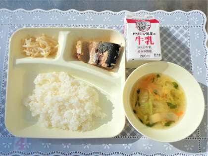 ごはん・牛乳・さばのみそ煮・すまし汁・もやしのゆずの香あえ