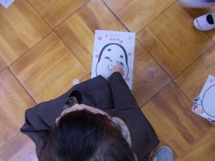 はじめに、紙芝居をしてくださいました。その後、お手玉、けん玉、だるま落とし,めんこ、福笑いなど地域の方々に教えていただき、楽しそうに活動していました。笑顔がいっぱいでした。