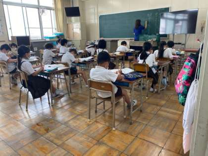 2・3・4年生は密集を避けるために、教室や学習室等を使用し2分割で授業を行いました。