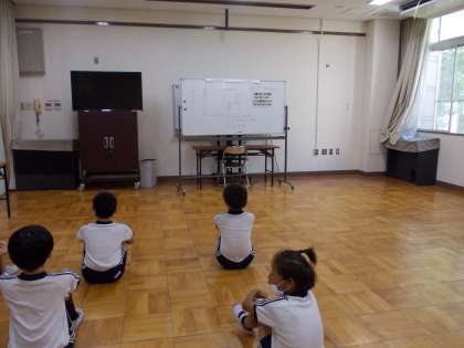 写真は6年生の様子ですが、さすが最高学年らしく静かに前を向いて説明図を見ながら待っていました。