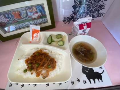 タコライスは、沖縄県の料理です。あまりなじみのない献立ですが、ごはんがよく進む味付けの肉と野菜がたくさんのっていて、とても美味しかったです。
