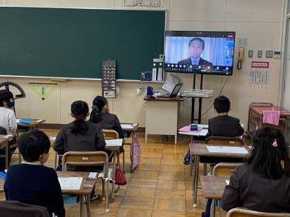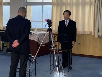 今回は、リモートで行いました。終業式の時のような音声トラブルもなく無事行いました。