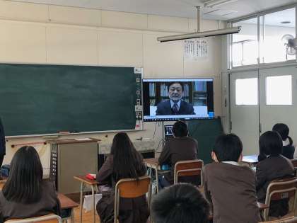 毎年集まって行っていますが、今年は新型コロナウイルス感染症防止のため事前に録画したものを各クラスで見ました。