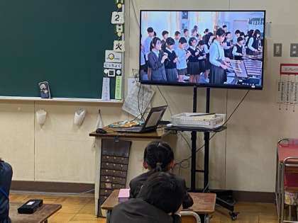 新型コロナウィルス感染症の予防のため、一堂に会することはできず、チームズと事前に収録した動画を教室で見ての祝う会となりました。