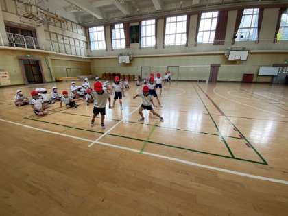 4年は、体育館で、反復横跳びをしました。