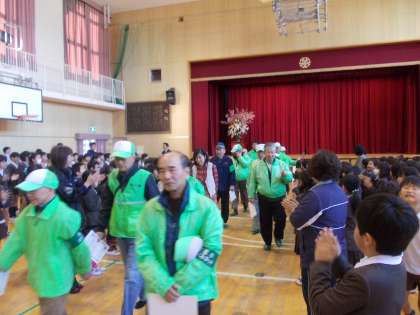 平成26年度の修了式と見守り隊感謝の集いを行いました。1年間を振り返って自分が成長した証を見つめなおすとともに、見守っていただいた地域の方々にお礼の気持ちを込めて感謝を表しました。来年度もよろしくお願いします。