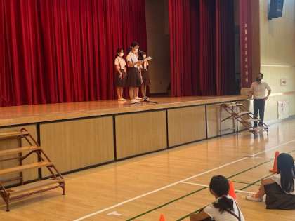 その後、6年生の各クラスの代表が、1学期頑張ったことなどを発表しました。