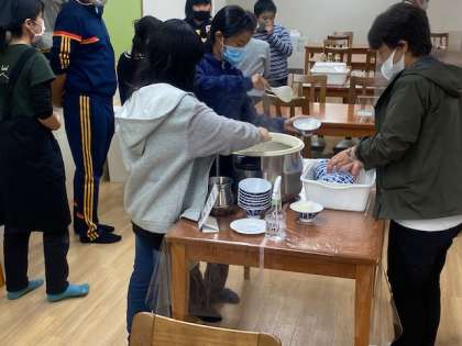 「入浴」の後は、さきほどの「クラフト」で作った箸で、