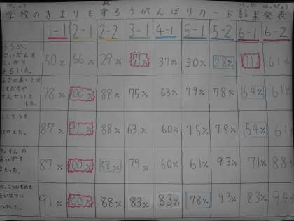 代表委員会の児童がとった「学校のきまりを守ろう頑張りカード」の