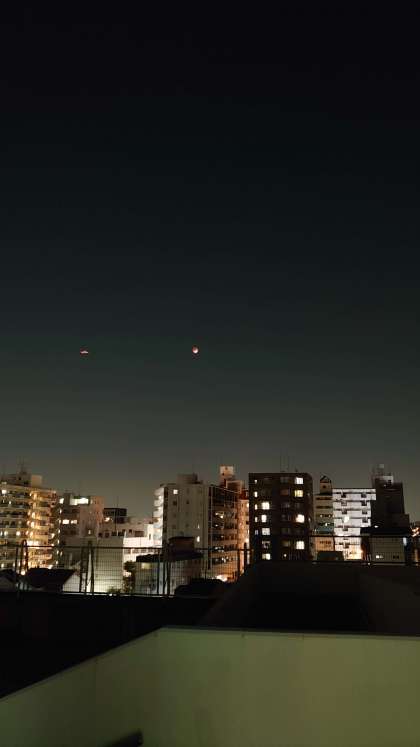 まだ仕事をしていた職員何人かで校舎の屋上から東の空を観上げました。