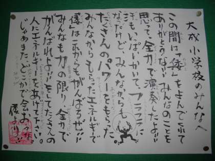 【和太鼓集団「倭」】から本校の児童のみなさんにお手紙が届きました。